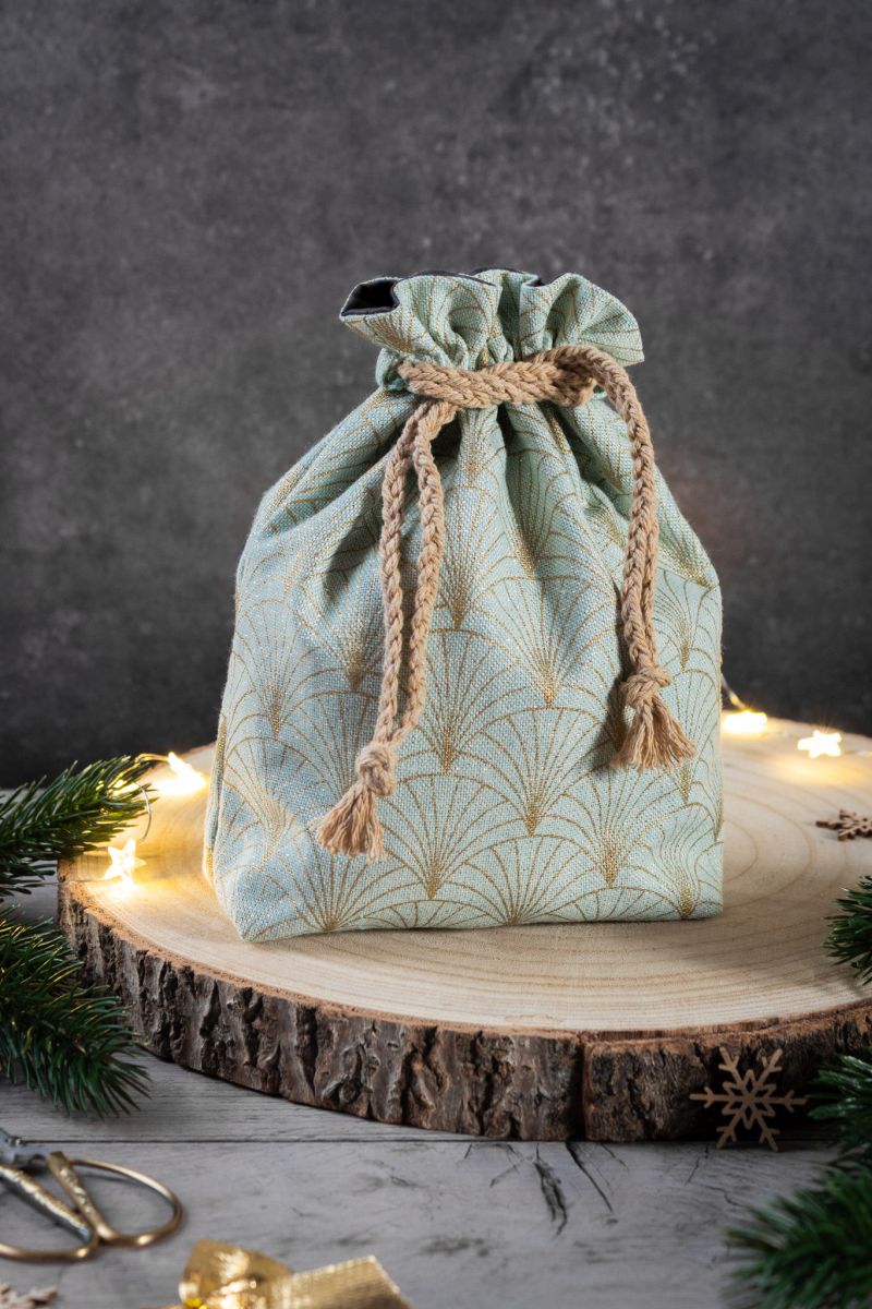 Der Geschenkebeutel eignet sich auch perfekt als kleines Upcycling-Projekt! Du kannst z. B. alte Tischdecken, Stoffreste, Bettwäsche oder sogar Hemden verwenden und ihnen ein zweites Leben schenken.